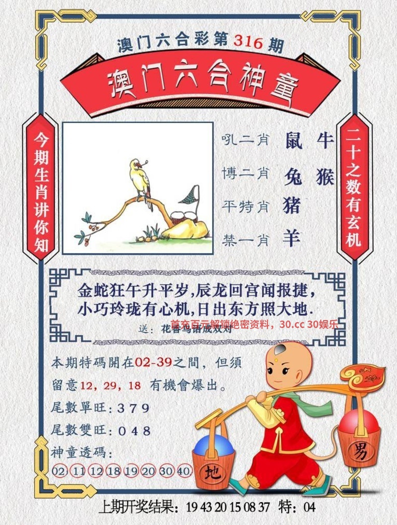 | 316期《七肖》【猴虎鸡羊鼠马狗】开 | |