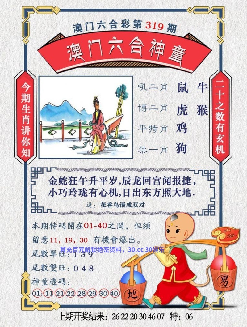 | 319期《七肖》【马猴鸡鼠牛龙虎】开 | |
