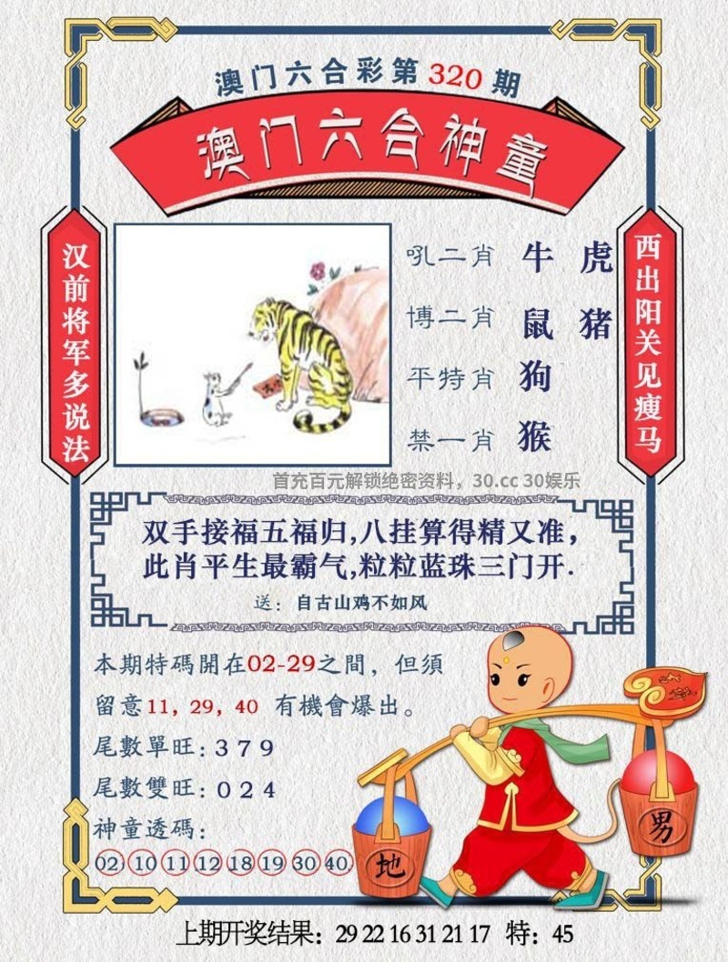 | 320期=发财单双=开虎28准 | |